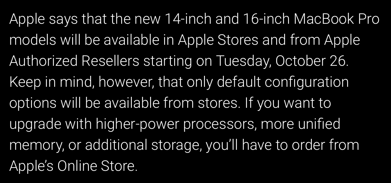I’m honestly a bit confused as to why Apple would introduce the M1 Pro with a 10 core CPU during the keynote, as if stating that that’s the base design for the chip just to then offer a base tier with 8 core CPU. 🤨