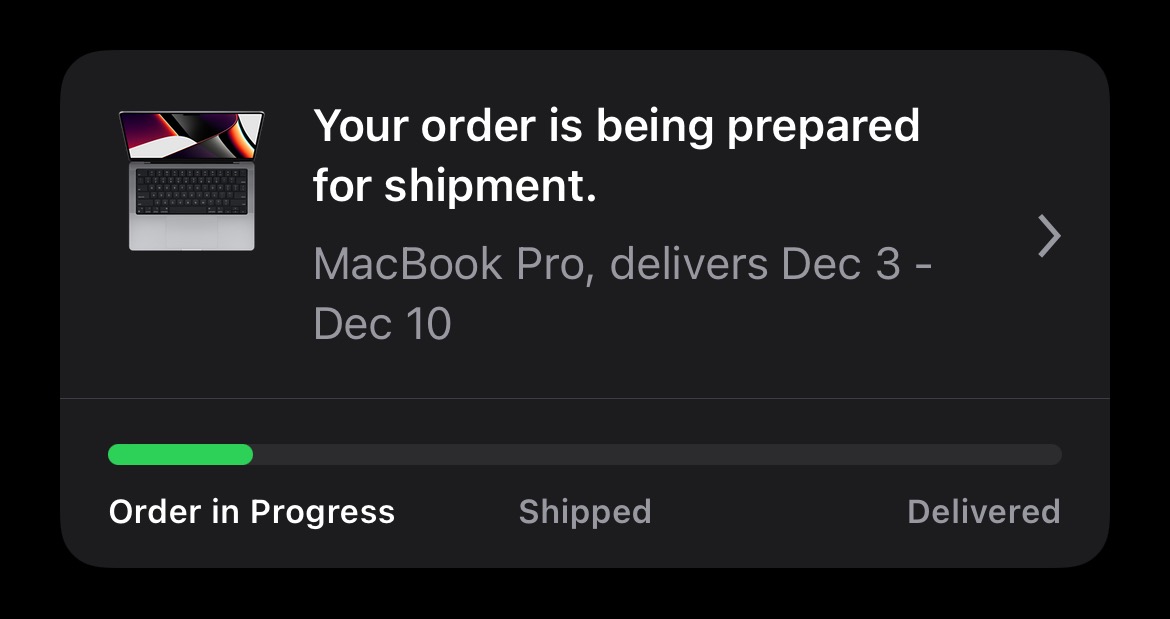 Order Tracker 9-16th November 16” Max 10/32/64GB/4TB - ordered (TBC) - PROCESSING, PREPARING TO SHIP 15/11 (DPD), SHIPPED 15/11 DUE 16/11, DELIVERED 16/11 (@derptron) 16" Max 10/32/32GB/1TB - ordered 18/10/21 - PREPARING TO SHIP (11/11), SHIPPED 11/11 (DHL)(@ScatteredPixel) 16" Max...