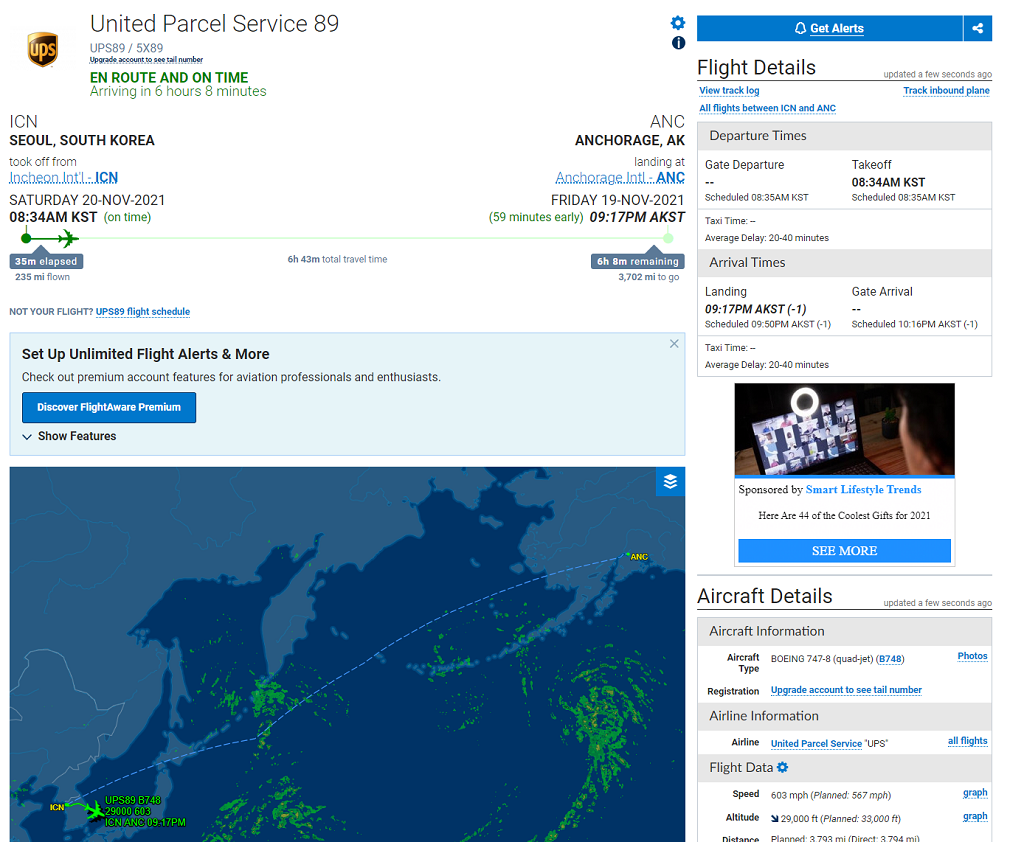 Think my MBP just hopped on this flight - UPS My Choice showed departure from Incheon to Anchorage at 820 AM 11/20/2021: