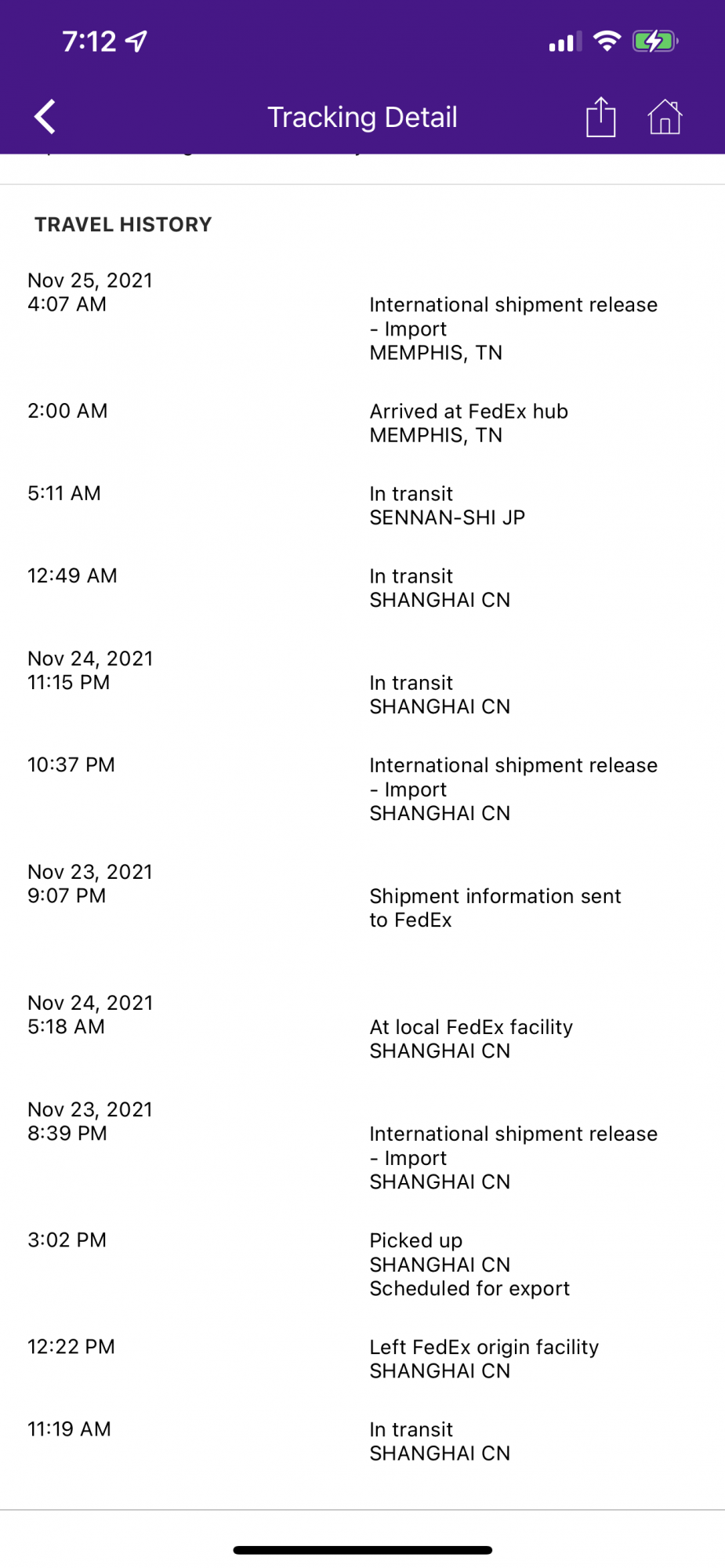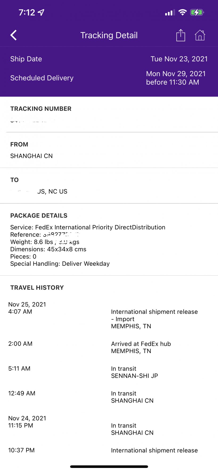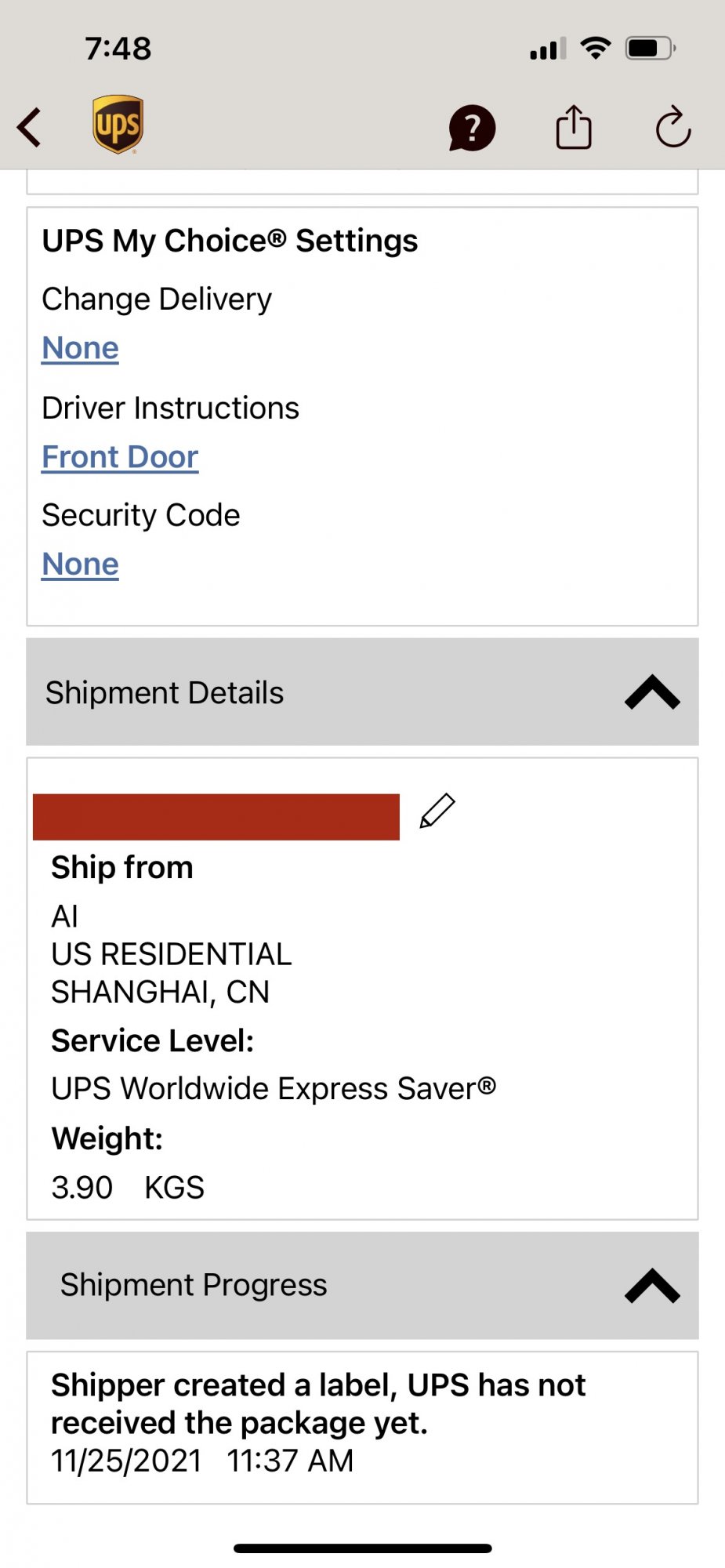 My UPS tracking finally started working. I got the shipping notification on Nov 19 but tracking number never worked until today. Tracking shows an export scan from Shanghai,China this morning. Delivery date is 1 day sooner than Apple’s quoted date.