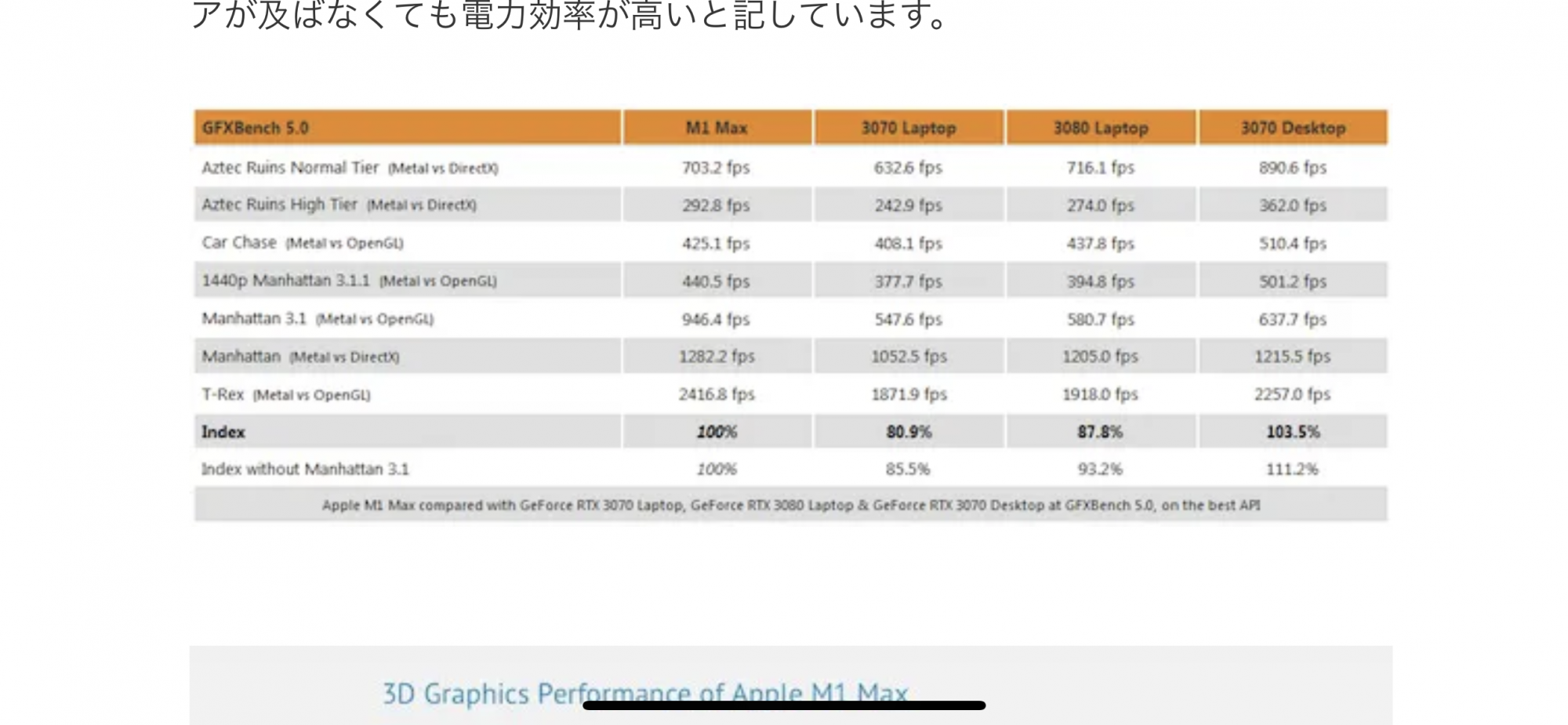 The M1 Max completely outclasses it in battery life, obviously, but I was hoping it would be pretty close to the best of Windows-world in GPU power.
