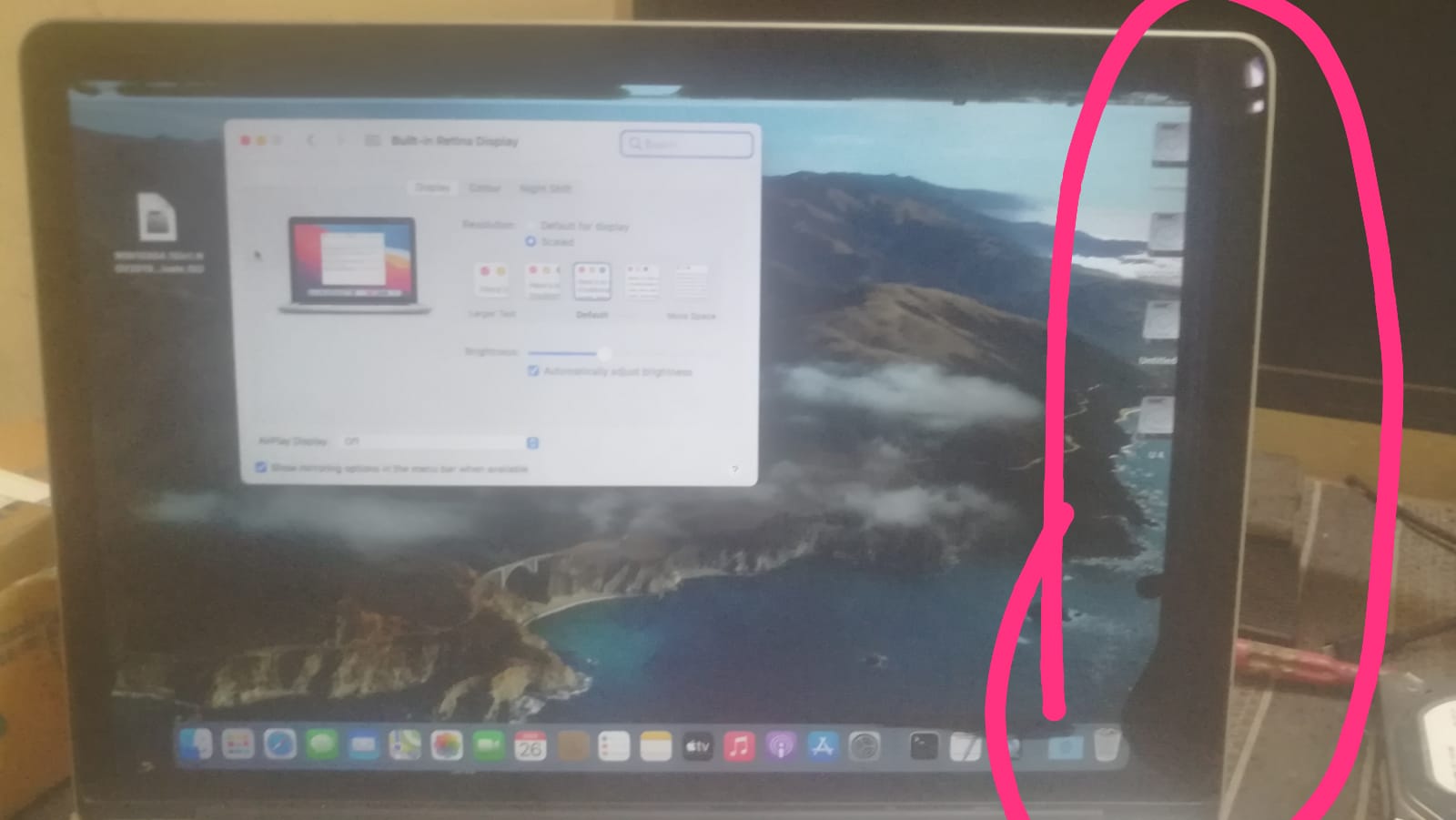 I itsmesignin macrumors newbie Original poster Mar 26, 2022 2 0 Mar 26, 2022 #1 my macbook pro display edge little bit cracked . if anyone know to resize entire screen area pls replay . Pls see the attached picture will get the matter . Attachments mac2.jpg 60 KB · Views: 131 mac1.jpg 75.8 KB · Views: 82