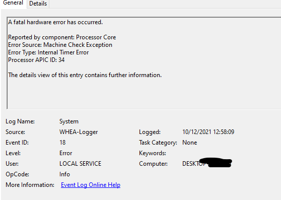 I have looked at the Event Viewer (I use this mostly as a Bootcamp machine) and the crashes appear to be Internal Timer Errors - please see below screenshot. I understand that this generally can stem from a number of causes, from overheating down to faulty processors.