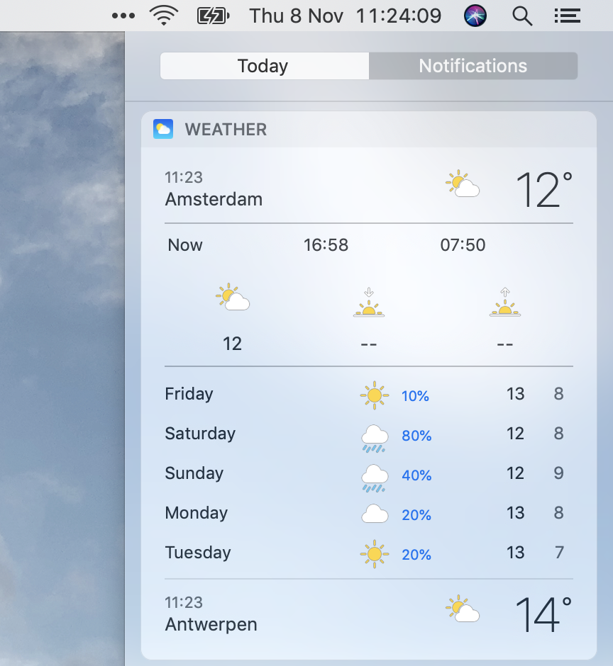 So I suddenly have two weather widgets. The regular one and another one appeared telling me tomorrow's weather partially in Dutch. Any idea where this comes from?