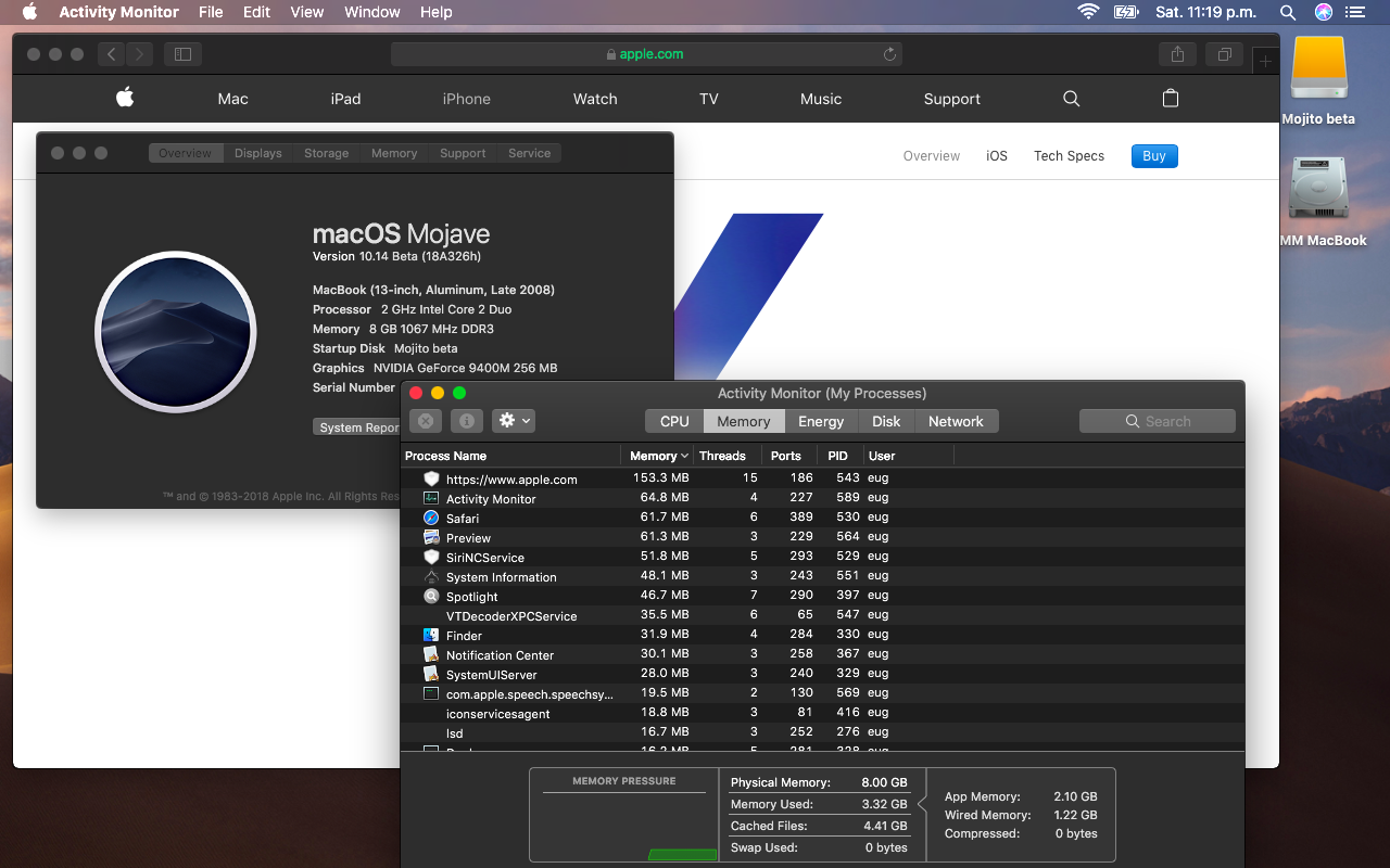 MacBook6,1 High Sierra video glitch thread mentioned the 9400M h.264 playback glitch disappeared in Mojave. I can confirm the that the