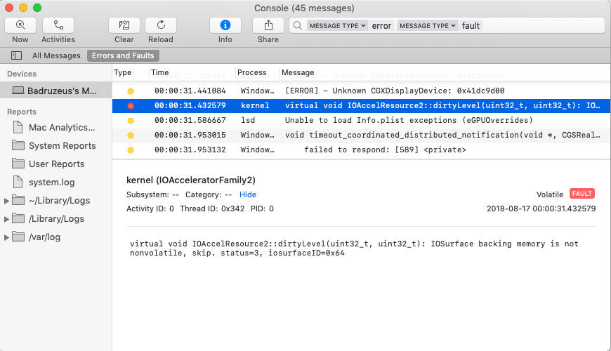 5809: 0x7fd77895f000 0.00: 0.00: 0.00 µs CGLTexImageIOSurface2D(0x7fd77895f000, GL_TEXTURE_RECTANGLE, GL_RGBA, 16, 16, GL_BGRA, GL_UNSIGNED_INT_8_8_8_8_REV, 0x7fd77a349300, 0);