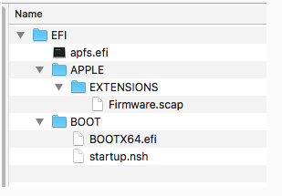 I see now that this is just an issue I’ve been having, which is strange. Can anyone give me an answer about the mystery “EFI Boot” option on startup? I know that when booting into an APFS on a patched EFI chip some code is supposed to run before booting starts, but that does not happen when I try to boot onto an APFS volume. Maybe that’s why installs don’t work on APFS volumes?