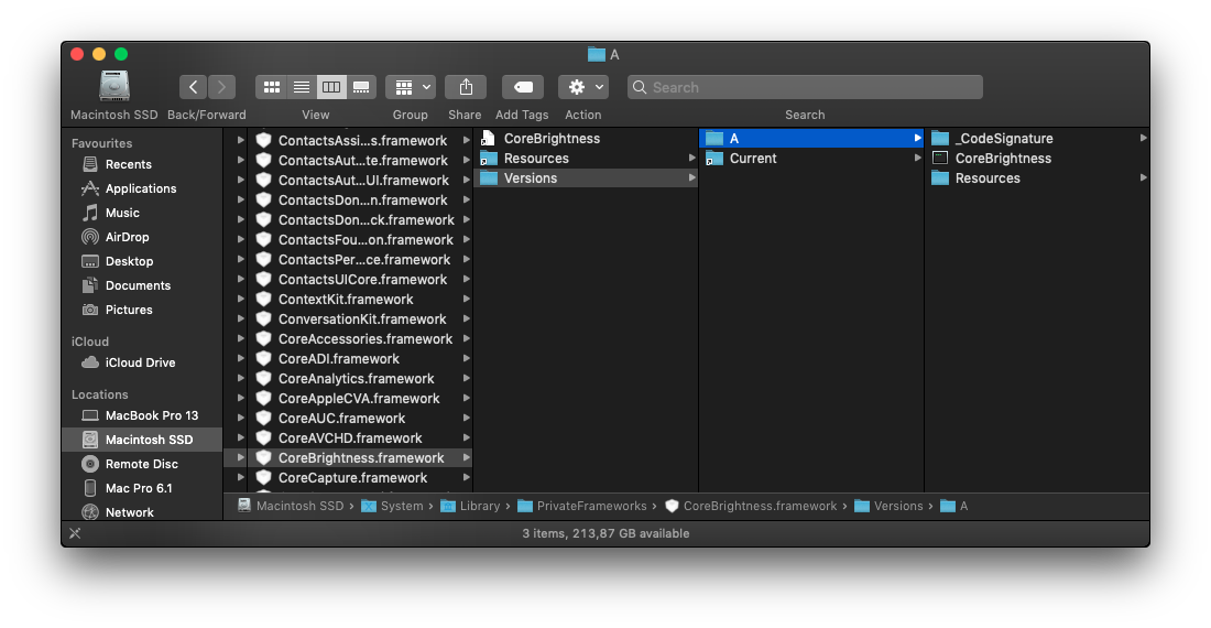 This seems crazy. But now, look at the brightness HUD overlay. In dark mode, it's quite transparent -- you can clearly see the colors of the desktop underneath. In light mode, it's supposed to be the same (only white, of course). But instead, it's a grey color. But you can still see the colors underneath if you have a very colorful wallpaper (ex. "Chroma 2"). Just extremely faintly. Would that not be exactly what you'd expect of wallpaper + dark overlay + light overlay? Less transparency, and grey.