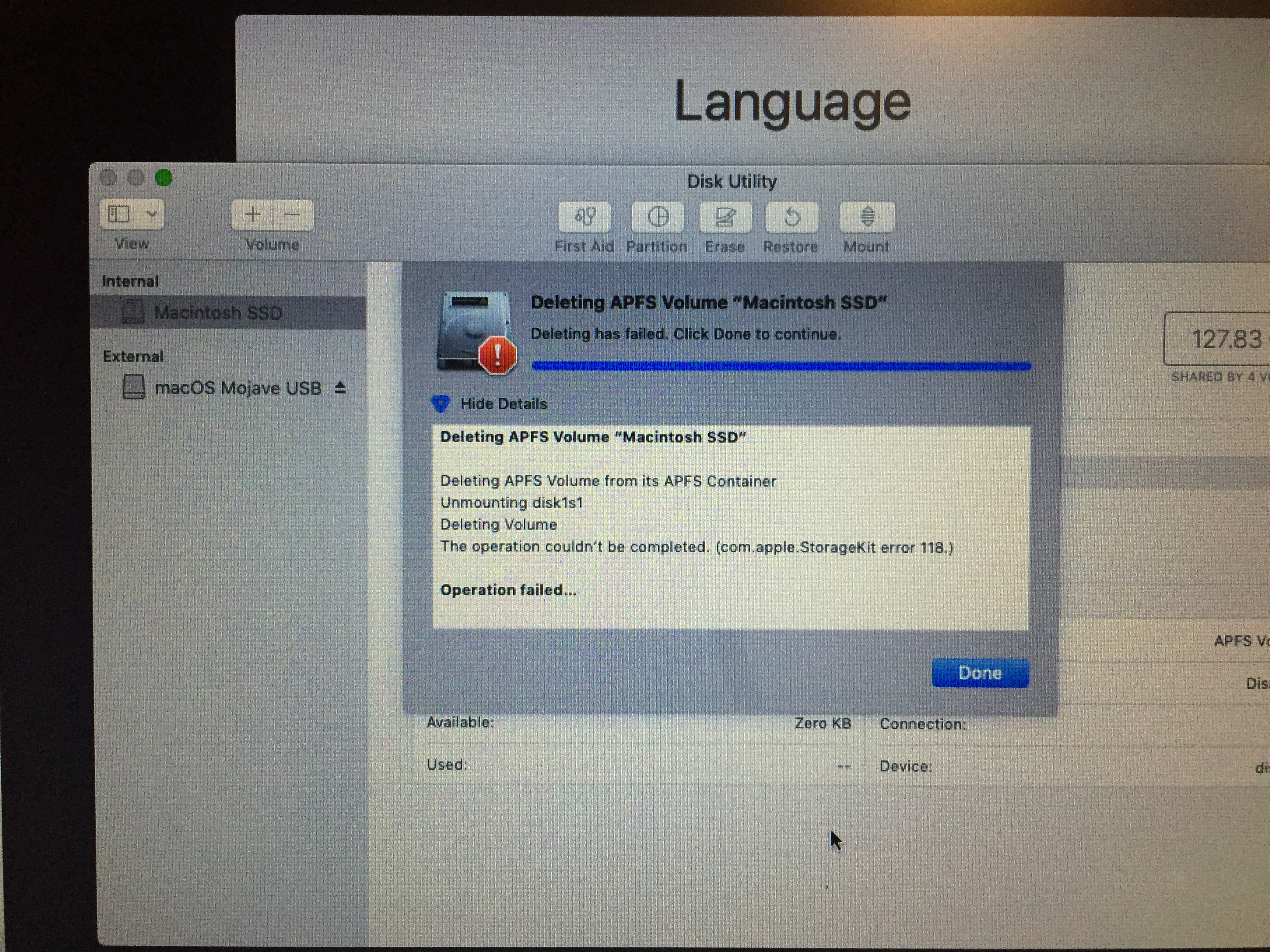 Well said jackluke, (as he can't unmount volume for Disk Utility to run) while in SUM along with your recommendations is;Boot your Mojave disk in single user mode holding CMD+S after power-on and try these steps: