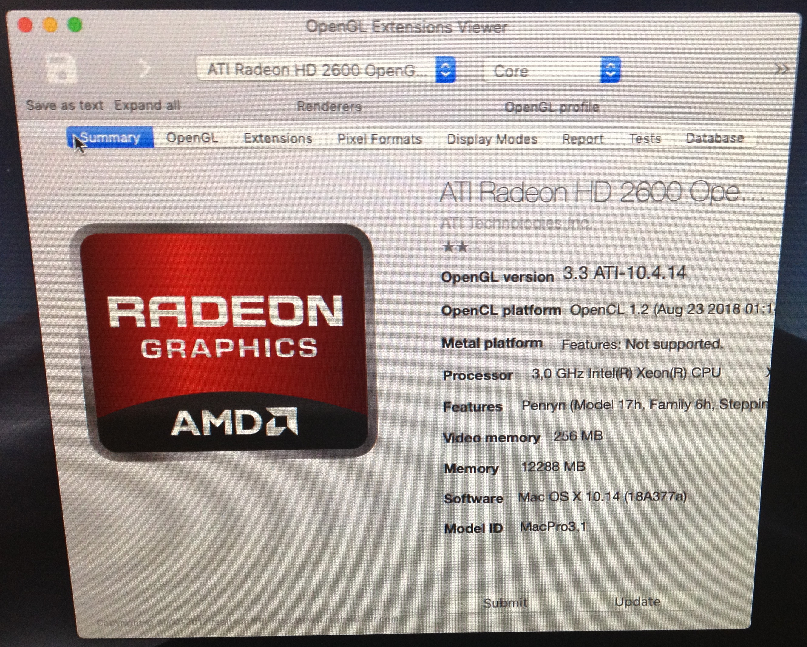 My GPU is even lower then this, 2004 Nvidia GPU, GeForce 6200. Indeed, the motherboard is from 2008. But the GPU still worked fine with High Sierra and now it works with Mojave, via the Dosdude1 patch.Lowest End GPU (HD2600) on Mac Pro 3.1 running Open GL with legacy video patches