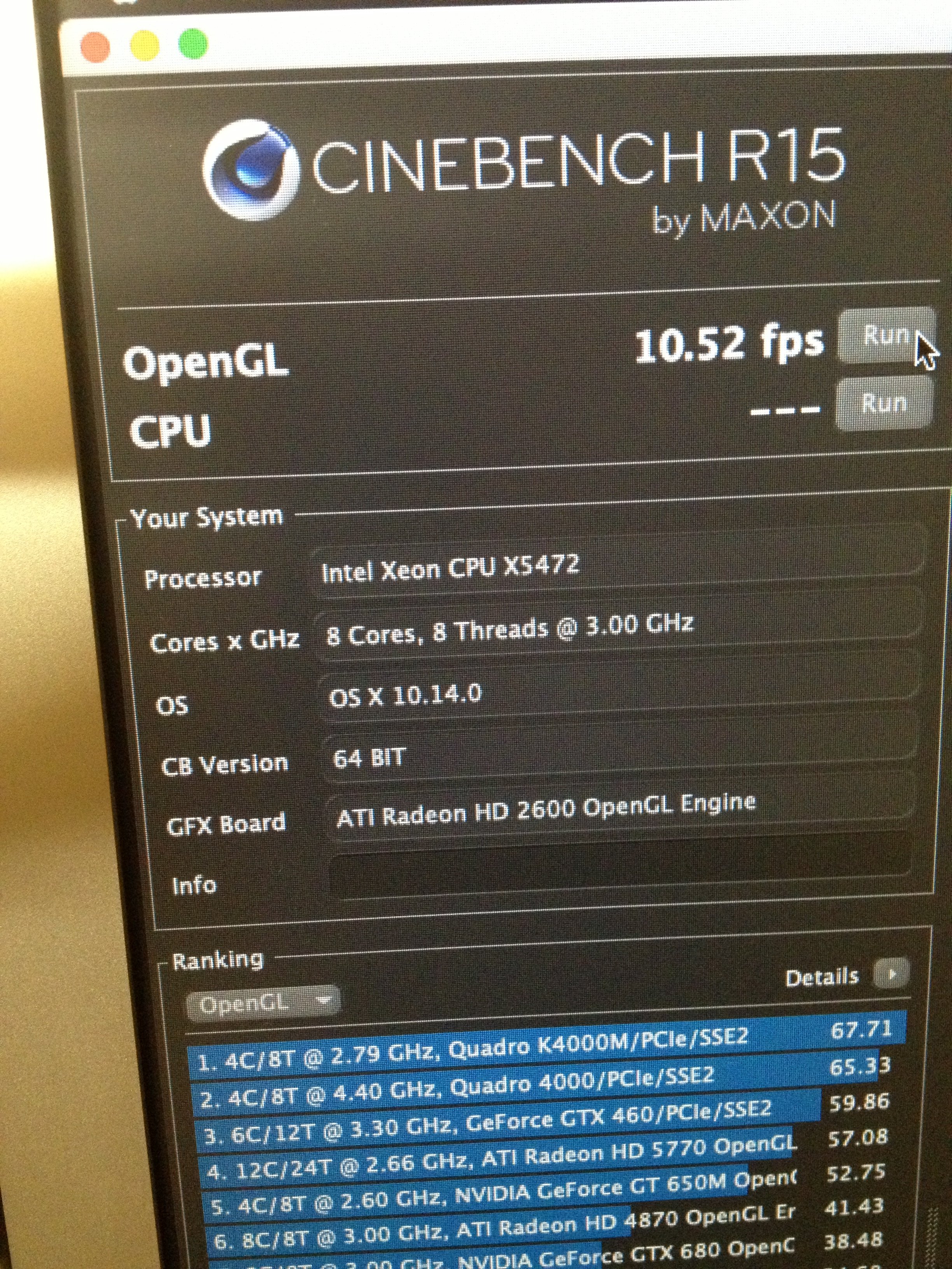 Lowest End GPU (HD2600) on Mac Pro 3.1 running Open GL with legacy video patches