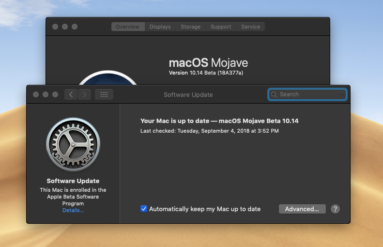 " macOS apps that use standard AppKit colors and are rebuilt with the macOS Mojave SDK will automatically appear in Dark Mode when the user turns on the setting.