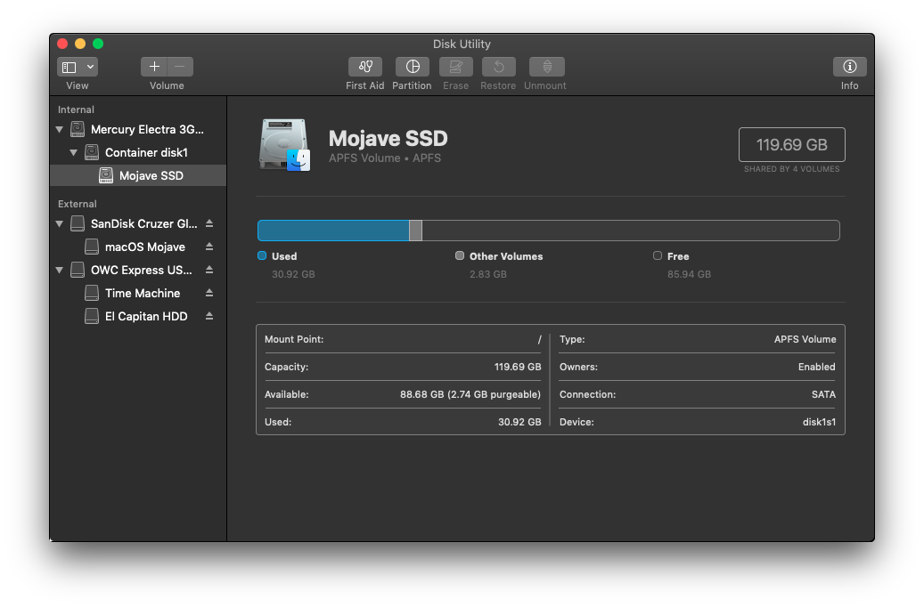 I thought that this glitch would come back after installing an OS on an APFS drive, but it did not, so I thought maybe it was a one time thing. Everything was perfect and smooth until updating from native Software Updater (OTA). After updating to the GM canidate, 18A389, my drive size was not correct, showing 50gb instead of 30gb.View attachment 781382