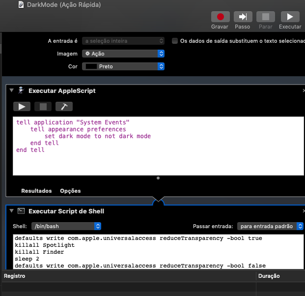 For example, with each reboot the script runs (because I already put it in the Initial Items), the script would check my schedule and then if it was between 6:00 am and 7:00 p.m., I would enter the clear mode, after that time dark mode.