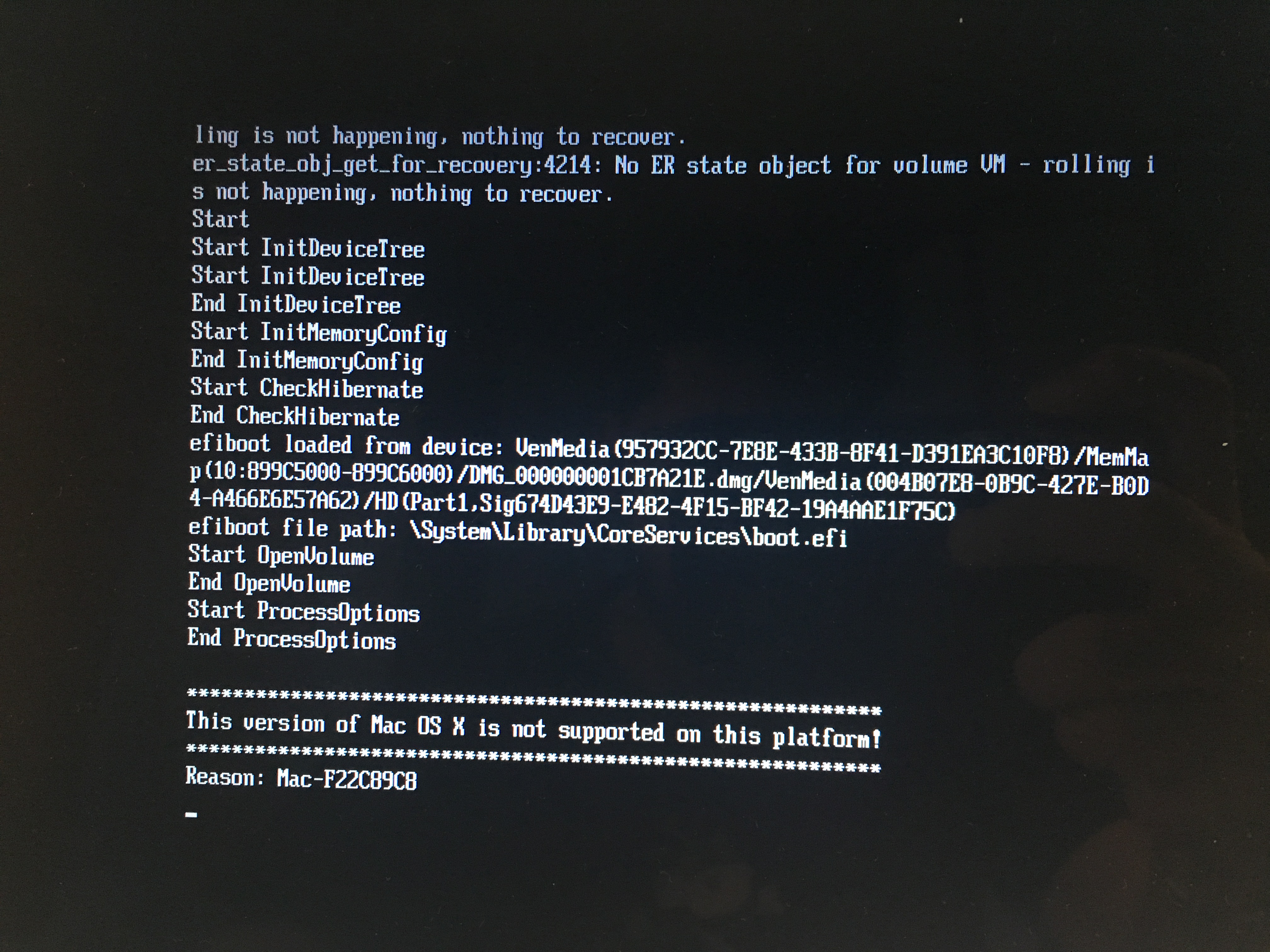 also with prelinkedkernel i get prohibitory symbol. With CMD+V+R nothing is happening, it boot normally.