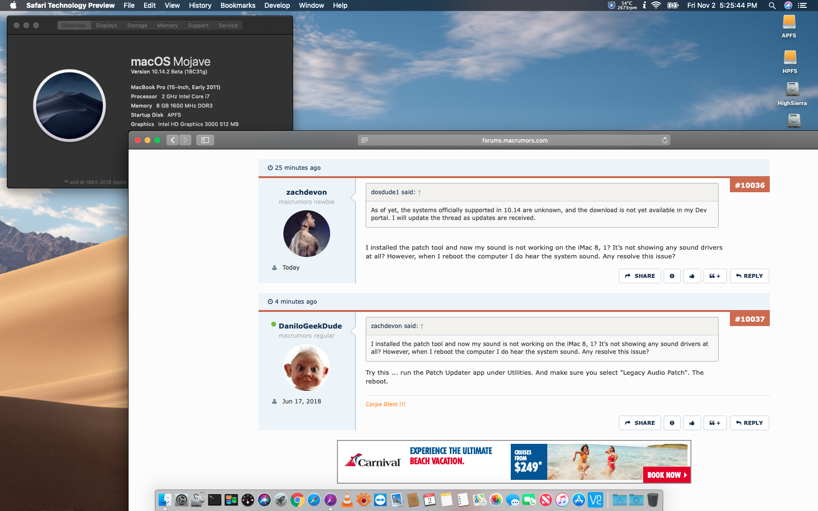 I've experienced an issue with "Force Rebuild Cache" option where it isn't running correctly after Mojave 10.14.1 update and it causes a loop on boot.