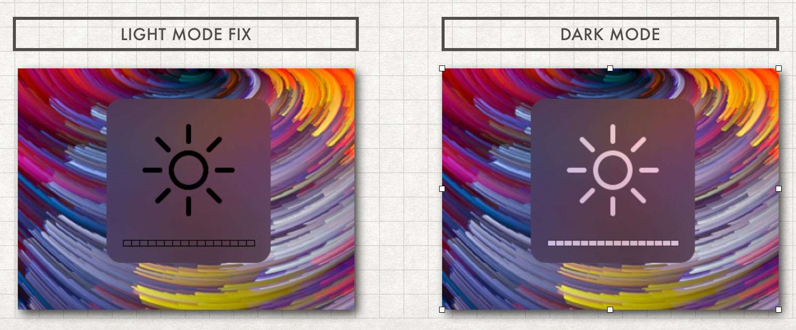 2. Brightness, Sound and other HUDs are "vibrant" in Light and Dark
