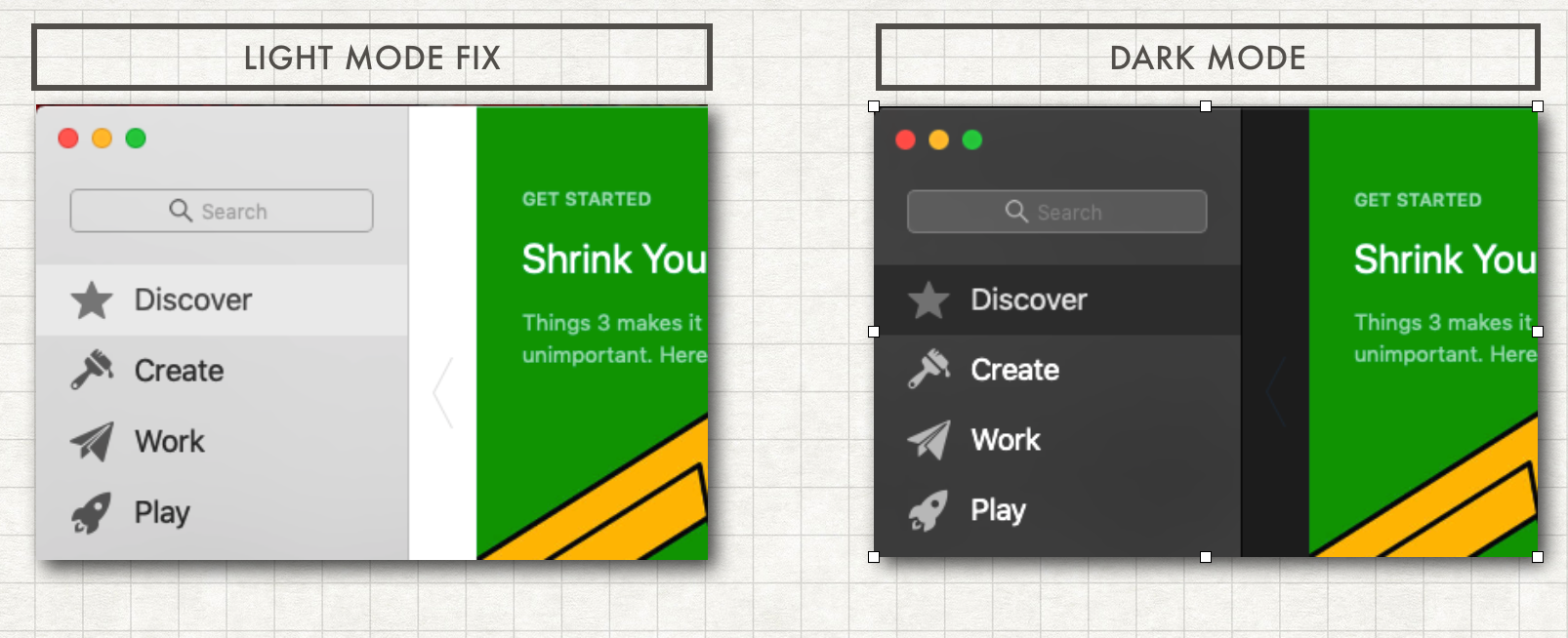 4. While "Inactive" Sidebar selections now blend in correctly