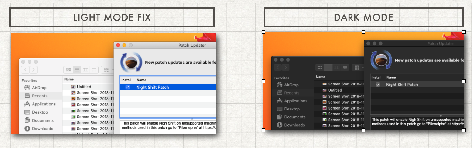 - The instructions says that i have to replace three files: HIToolbox, AppKit and CoreUI. OK. I made a backup of this three files. But the original patch only have two files named as CoreUIHybrid-18B75-Fat-v1.3 and HIToolboxMenubar-18B75-Fat-v1.3