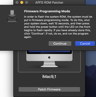 I have a 2009 iMac and used the apfs rom patch I was lucky I picked the right eeprom model number from the list and usually the first choice is right but it is a risk as you could brink your machine if you don't pick the right one or if you interrupt the flashing process after mine rebooted I was greeted with a black screen so I rebooted held the command,option,p and r keys and it works just fineis anyone used APFS ROM Patcher for iMac? If you used HOW?