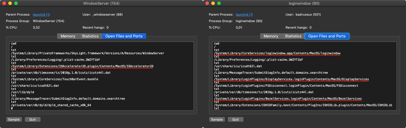 IOAccelerator.framework and or its plugin inside /S/L/E/ with previous Mojave 10.14.3 , it's involved too in graphics acceleration at loginUI and WindowServer.