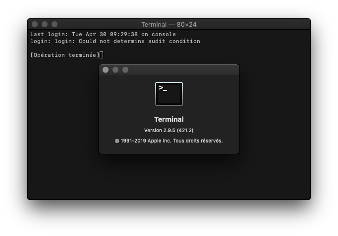 And Terminal which has changed version (2.9.5) does not work too, which is a little more boring.