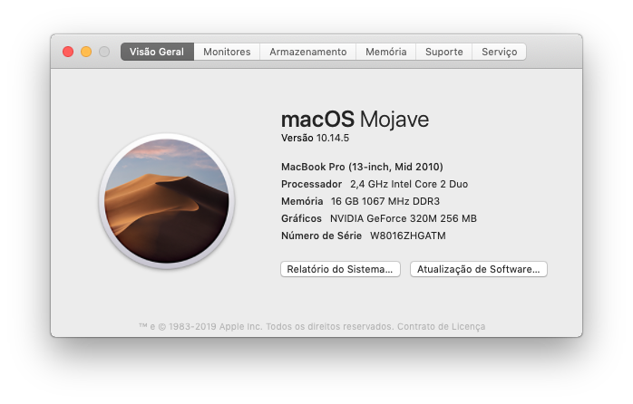 Macbook Pro mid 2009 (5,5), Mojave installed via dosdude’s patcher.