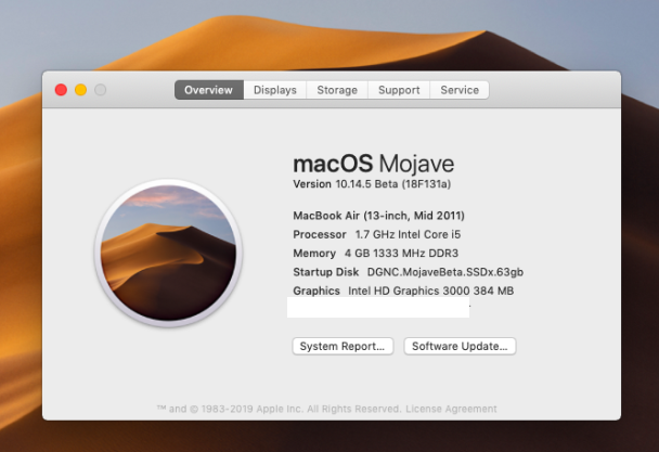 Successfully updated to Mojave 10.14.5 Beta 5 on unsupported MacBook Air Mid 2011 (MacBookAir4,2)