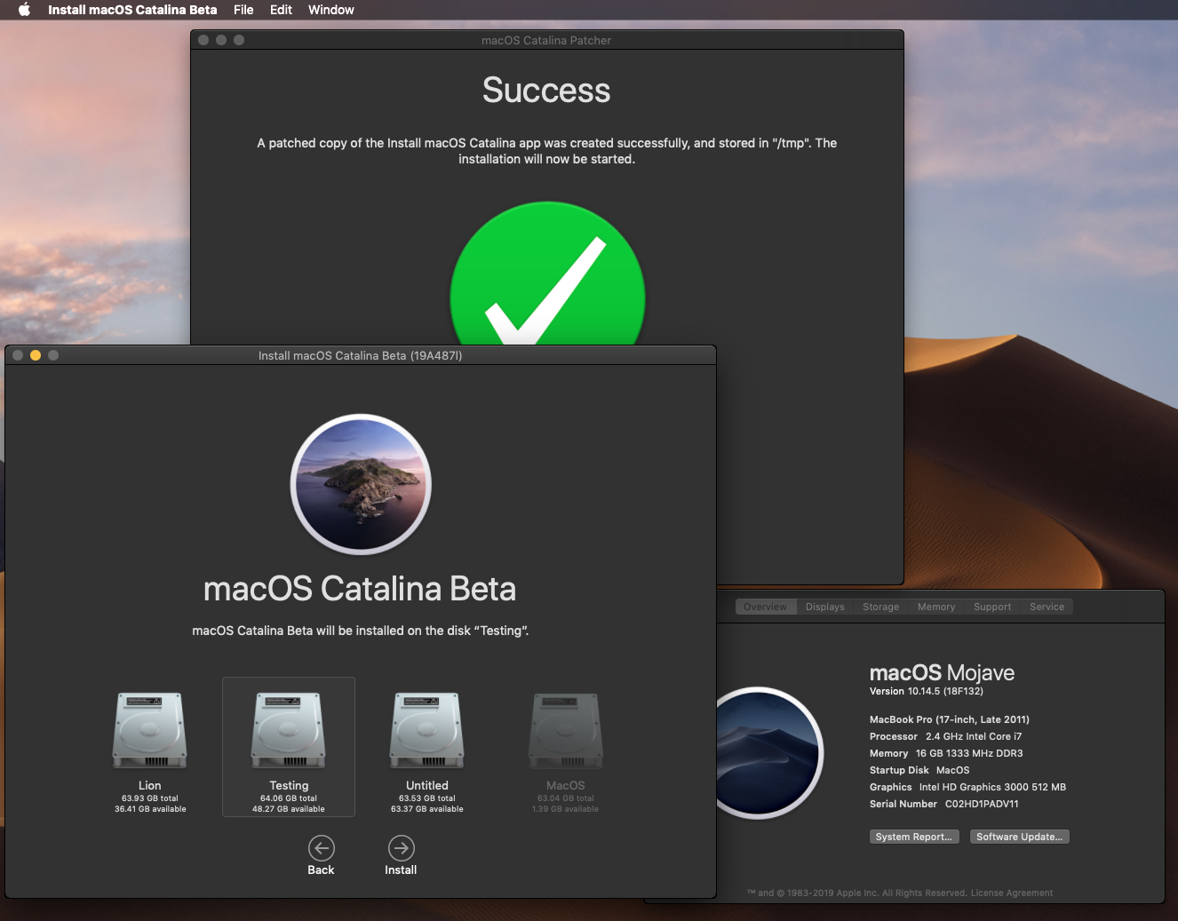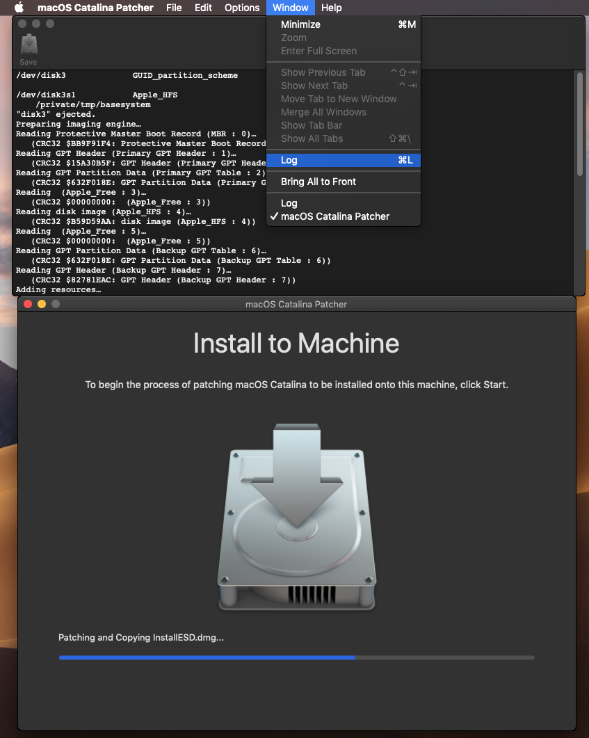 Catalina Patcher (along with a completely redesigned webpage as of a few days ago)! With this release, I have finally brought Catalina Patcher out of beta stages! All installation options are now fully implemented, finally bringing the program up to its full intended level of functionality. I have also implemented a logging feature, to more easily debug issues that may occur.