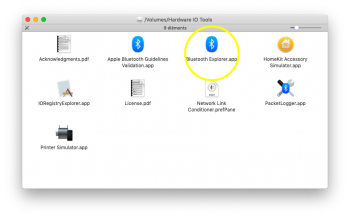 Inside the .dmg we find "Bluetooth Explorer.app" that I saved in Applications/Utilities (but we can also put it in the folder Applications).
