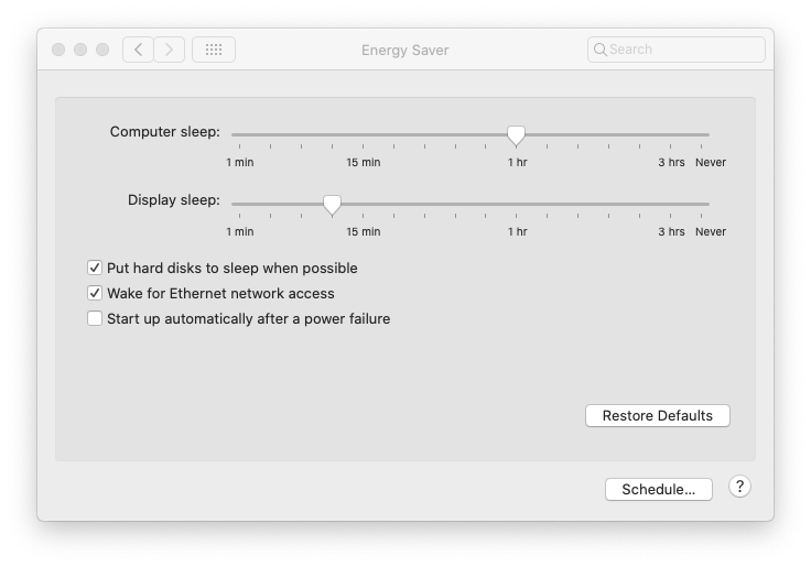 Pretty much what it says. When I tried to wake the MacPro from sleep in those instances, the monitor would never come back from black when the machine was supposed to wake. It appeared to be unresponsive and required a hard reboot. Fortunately that issue hasn't happened for quite sometime. My Energy Saver panel settings are just...View attachment 903391