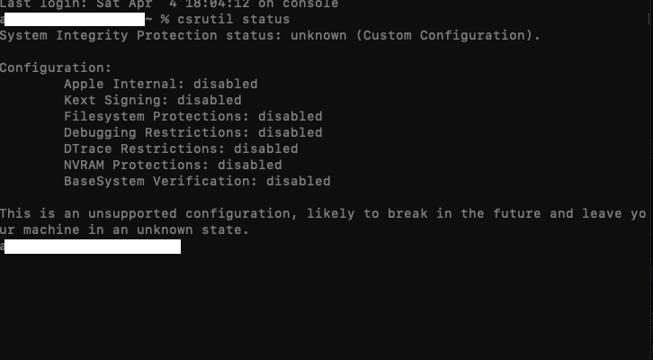 - Platform Compatibility Check, SIP and AMFI fully disabled