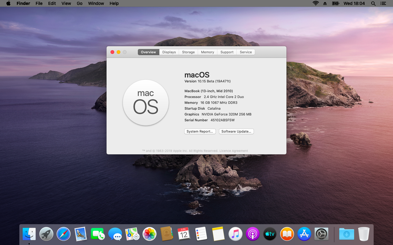 Thanks to you, I was able to capture a screenshot I once thought was impossible. Nine days after the release of the first developer beta of macOS Catalina, the OS is working with no issues whatsoever on an almost nine year old computer. The humble MacBook7,1. Bravo.