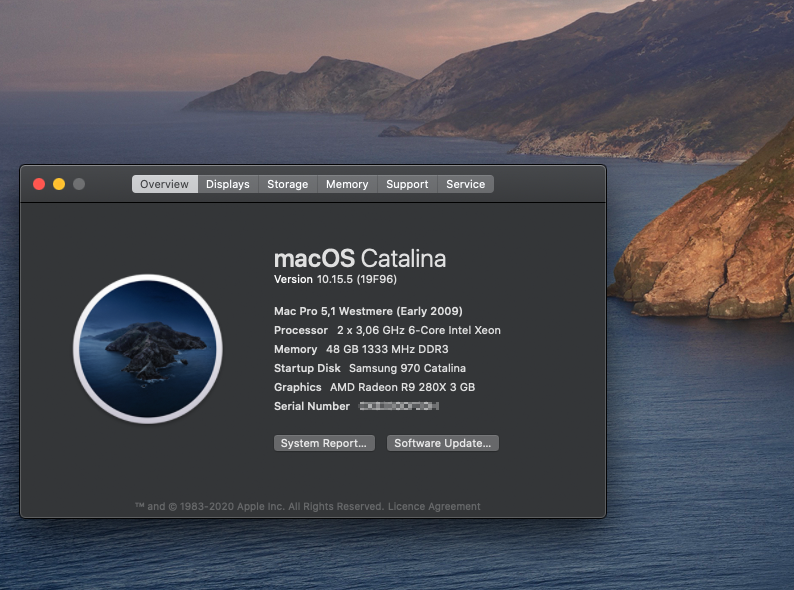 Omg, that RAM and graphics card. No idea why Apple doesn't support it officially.Up and running, 10.15.5 build 19F96 via Softwareupdate and CatalinaOTAswufix on cMP 5,1. No issues so far.