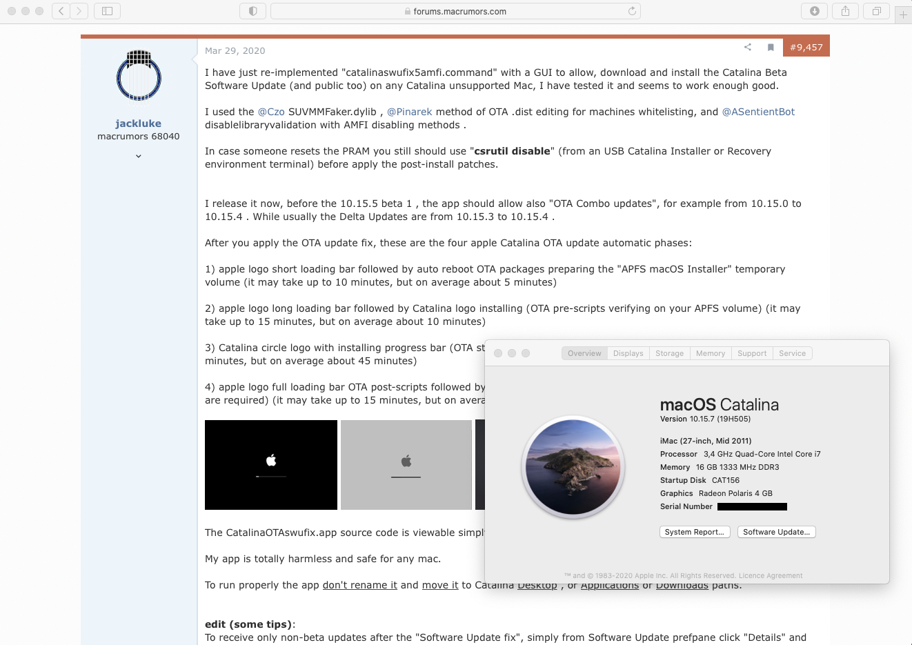 4a. let the iMac reboot several times and install the upgrade until it is finally done, check the version, should now be 19H505, if not proceed to 4b