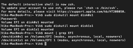 Probably disk0 is mounted at "/Volumes/EFI" and disk1 is mounted at "/Volumes/EFI 1"