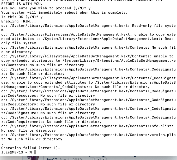 Catalina onlyI was able to enable TRIM without any issues on a MB5,1 under 10.15 Beta. Or is it just a Catalina Beta issue?