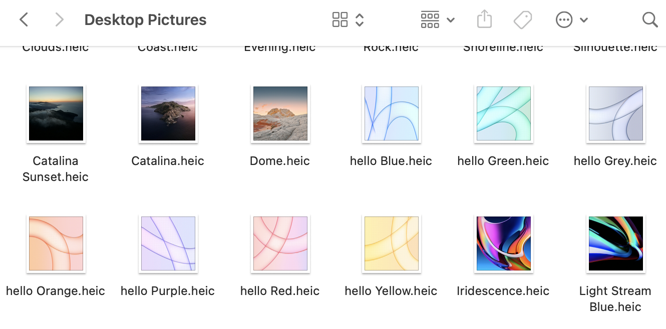 Thanks for the fast reply. Doesn't look like they're here in 11.4 beta. That's weird, isn't it? Unless I'm in the wrong folder. (I'm in Macintosh HD/System/Library/Desktop Pictures.)
