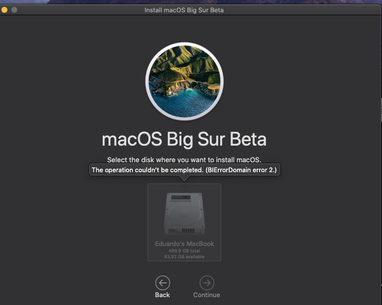 "The operation couldn't be completed. (BIErrorDoamin error 2.)"