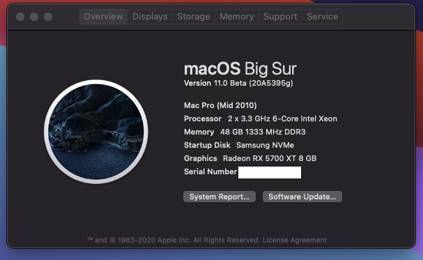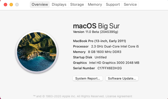 *Some may be interested that I've created a 1GB HFS+ partition containing a reduced set of the unpatched 'Install macOS Big Sur Beta' USB files on it (including all of the hidden folders and files). My Mac setup doesn't seem to like booting into Recovery using Cmd-R, as I have 5 Mac OS's available to boot from (10.6/9/14/15&11.0), so I've created a quick-boot 'Base' BS volume to help manipulate the latest OS from the terminal. The main work-around, to reduce the total files size from 12GB+ to under 1GB, is to replace the SharedSupport.dmg (inside Install macOS Big Sur beta.app/C/MacOS/InstallAssistant.app/C/SharedSupport) with one created using Disk Utility of about 10MB in size, or however small you can make it. You have to bless the boot.efi file (inside the hidden S/L/CoreServices folder) for this 'base' OS to show up in the standard Mac boot menu. Also, make sure that the 'com.apple.Boot.plist' file (inside the hidden L/Pref/SysConfig folder) includes: