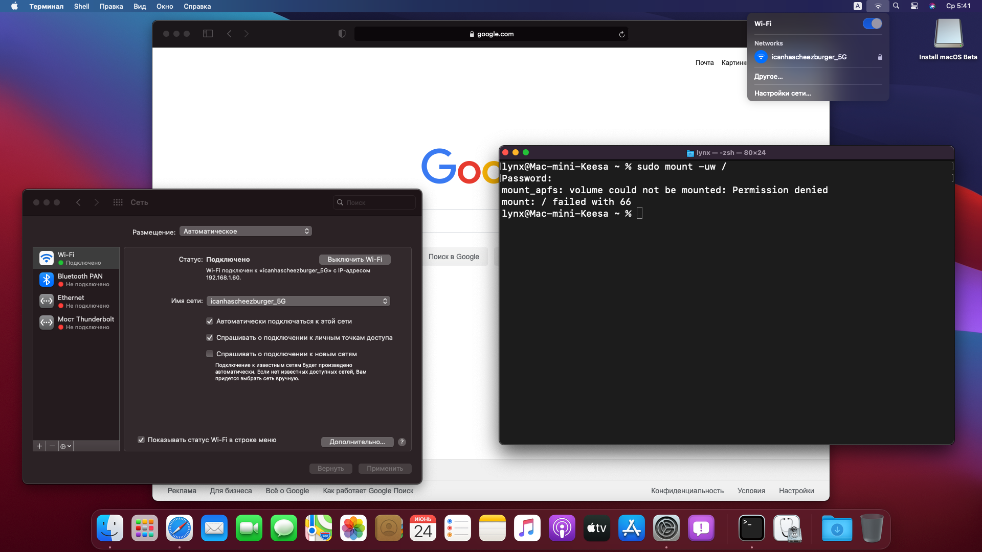 Code:sudo mount -uw / ; killall Finder cd /System/Library/Extensions/ sudo mv IO80211Family.kext IO80211Family.backup open /System/Library/Extensions/ copy using Finder the IO80211Family.kext from the link attached return to BigSur terminal and continue typing: sudo -s chown -R 0:0 /System/Library/Extensions/ chmod -R 755 /System/Library/Extensions/ kmutil install --update-all kcditto