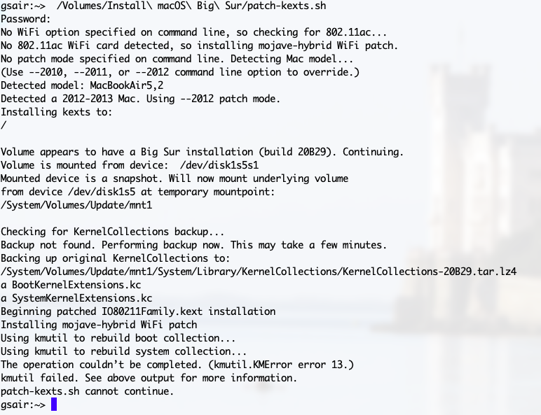 21c. Input "/Volume/Image\ Volumes/patch-kexts.sh /Volumes/***" and hit enter, when finished enter "reboot", both without the quotes.