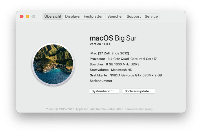 On saturday I finally installed Big Sur on my late 2012 iMac.
