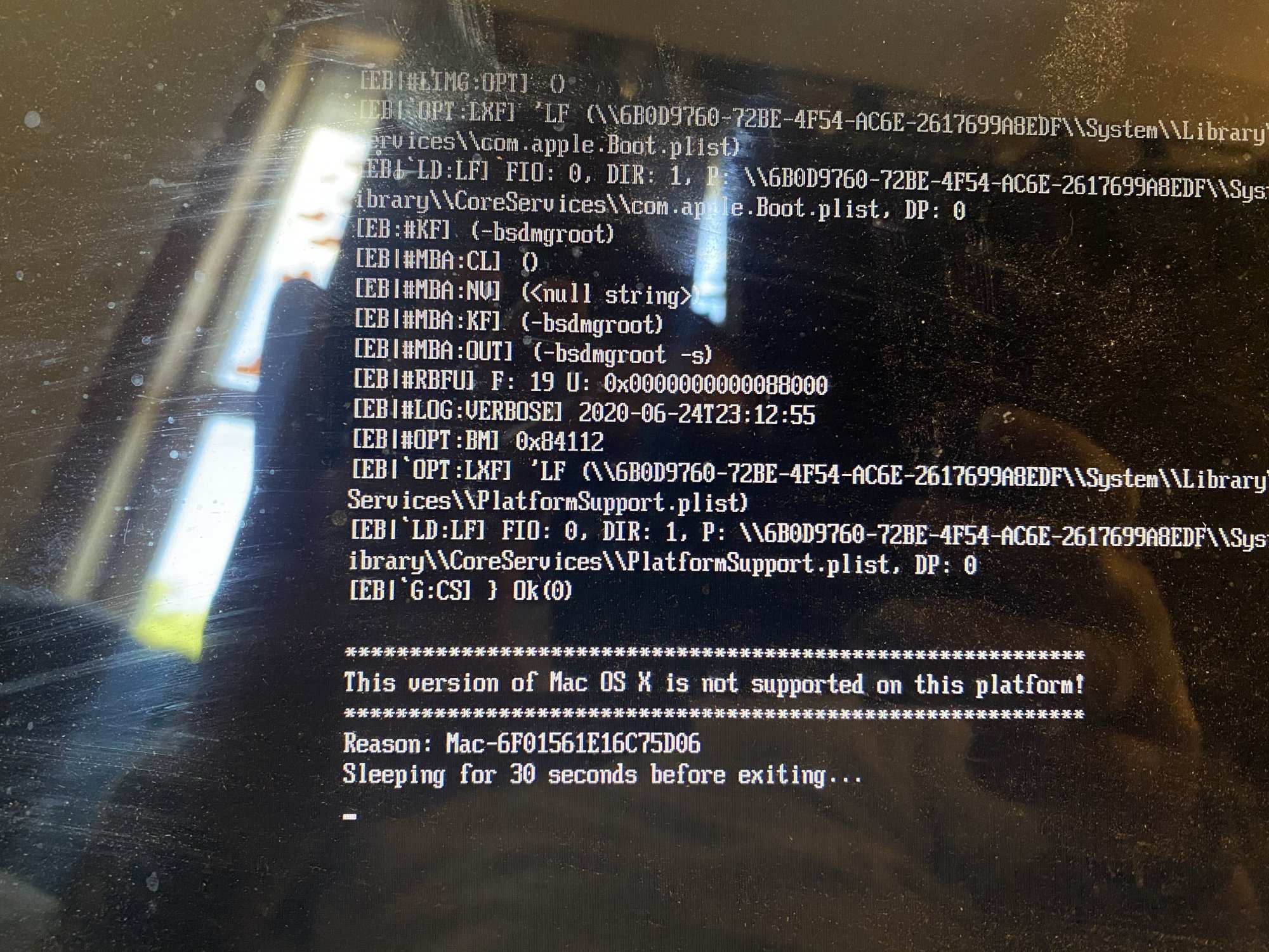 boot.efi patch with all the 0xffffffffs actually works for this, even though