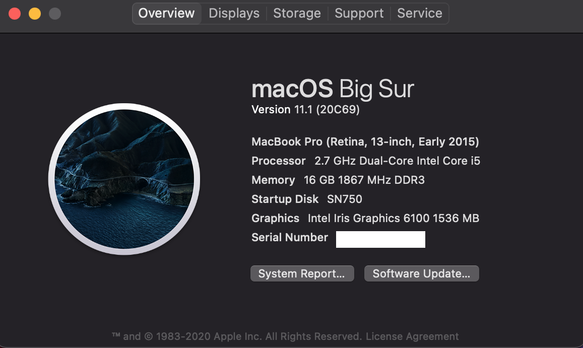 its here MacOS Big Sur 11.1 (20C69).