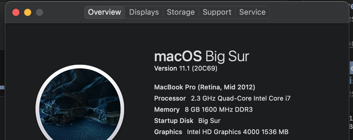 My rMBP mid-2012, 10,1, i7 quad-core, upgraded 802.11ac is almost identical to Quackers device. The install to 11.1 (20C69) was quick (less than an hour) to my internal SSD. I've been using 11.0.1 for my production now and I can say that everything about Big Sur is impressive. The 11.1 version is even better so far. I have had over 100 tabs in Brave Browser and Safari open at the same time. In addition Photoshop was running with more than a dozen 2-5MB files open, plus GraphicConverter running with several 50-75-file folders open in it's browser windows. Plus put Mail on top of all this.Also have a MBP 2012 Retina - still feels extremely powerful to me! Still on Mojave and had no intentions of going to Catalina.