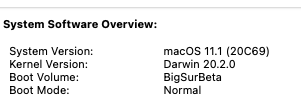 Note that, in my case, I installed Big Sur 11.1 onto its own partition from Catalina partition (both located on the same SSD.), and not from a USB install thumb drive.