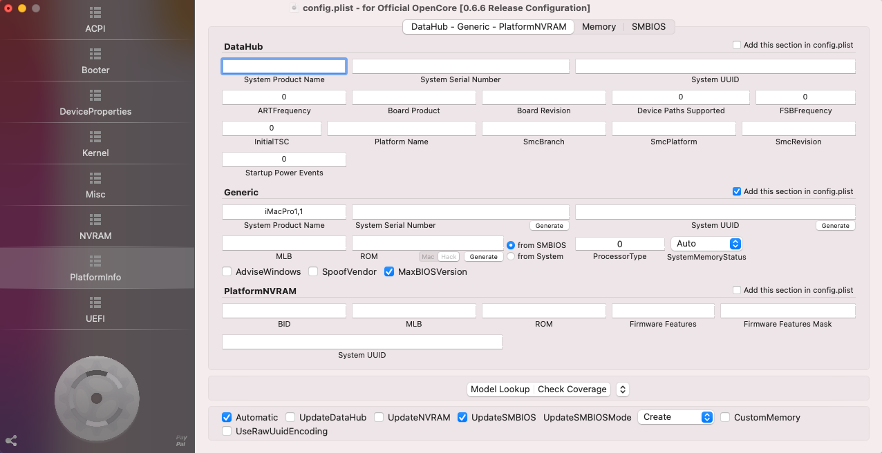 Most of you know that I spent some time on getting these machines supported with several patcher options. I decided to redo the first experiment with some minor differences. I started with @dosdude1 patcher installed Catalina 10.15.7 (19H2) and used an OC config similar to @jackluke USBOpenCore4s1 , i.e. setting only the BoardProduct within the Platforminfo->SMBIOS (Mac-7BA5B2D9E42DDD94) section and the SystemProductName (iMacPro1,1) in PlatformInfo->DataHub->General section and checked additionally the new MaxBIOSVersion flag there, too. The latter SystemProductName setting was necessary to make the internal SSD accessible for the Big Sur installer in the first step starting from Catalina. The former BoardProduct only will work for later OTA upgrades within Big Sur.