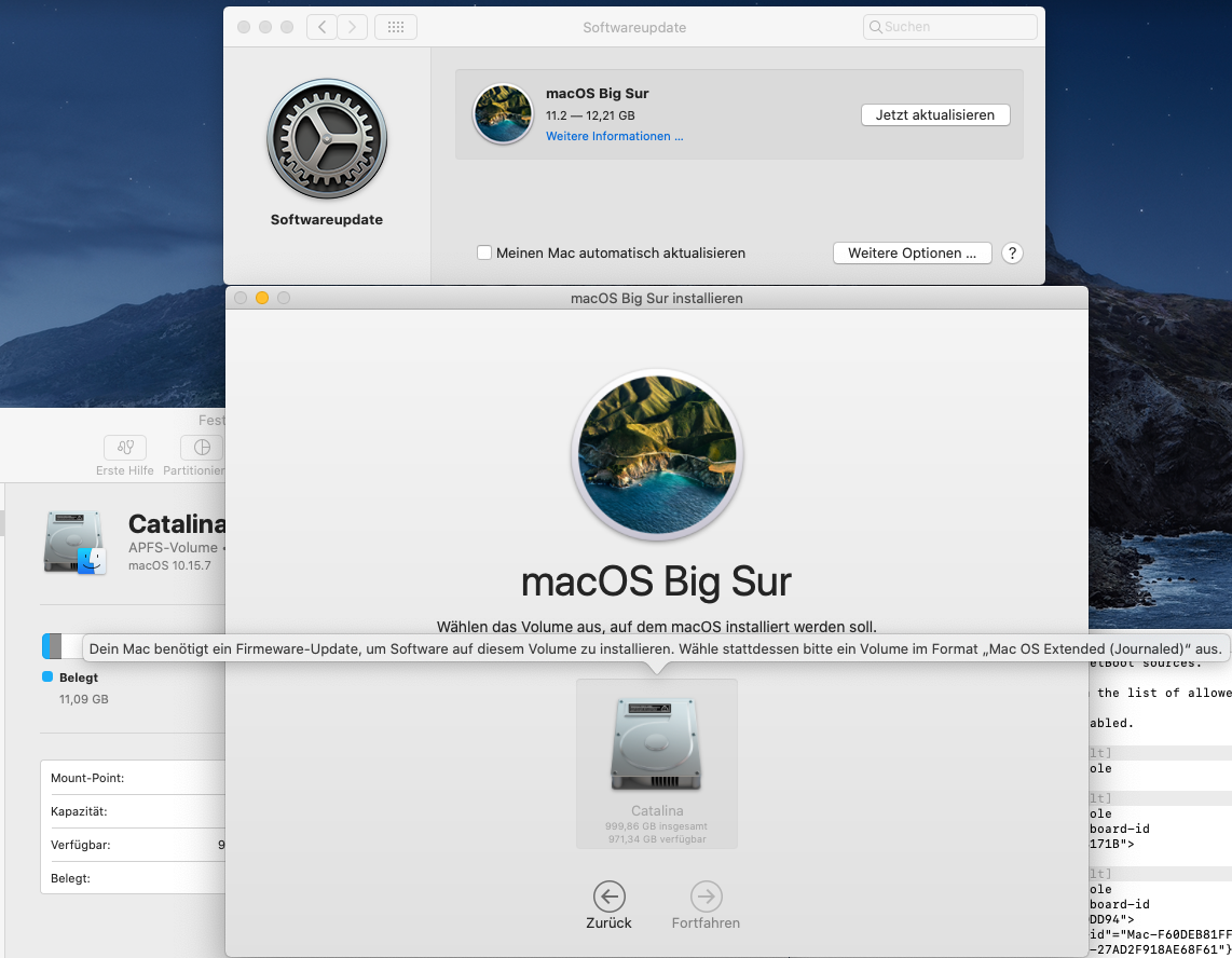 On the first partition I have macOS Catalina and I want to install macOS Big Sur on the second partition).
