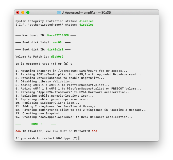 To add cMP5,1 board ID with PlistBuddy in "/S/L/CoreService/PlatformSupport.plist"